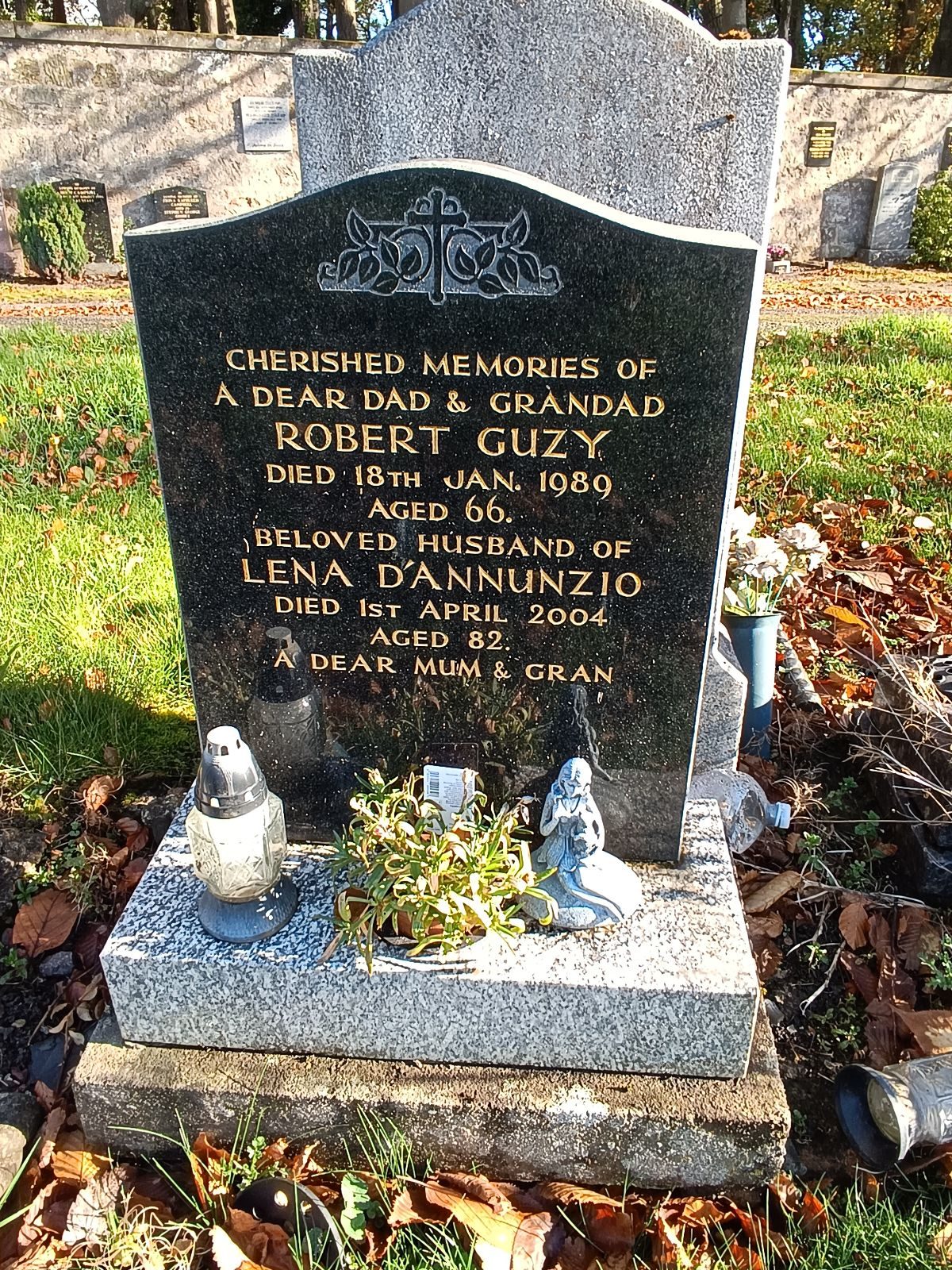 Pochowany z żoną Leną D’Annunzio (1922? – 01.04.2004). |