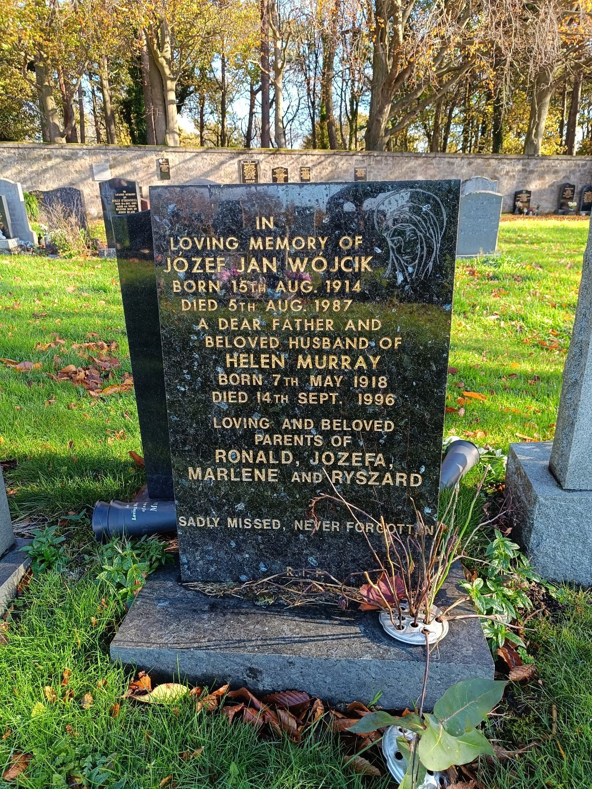 Józef Jan Wójcik jest pochowany z żoną Helen Murray (07.05.1918-14.09.1996). Mieli dzieci: Ronalda, Józefę, Marlene i Ryszarda. |