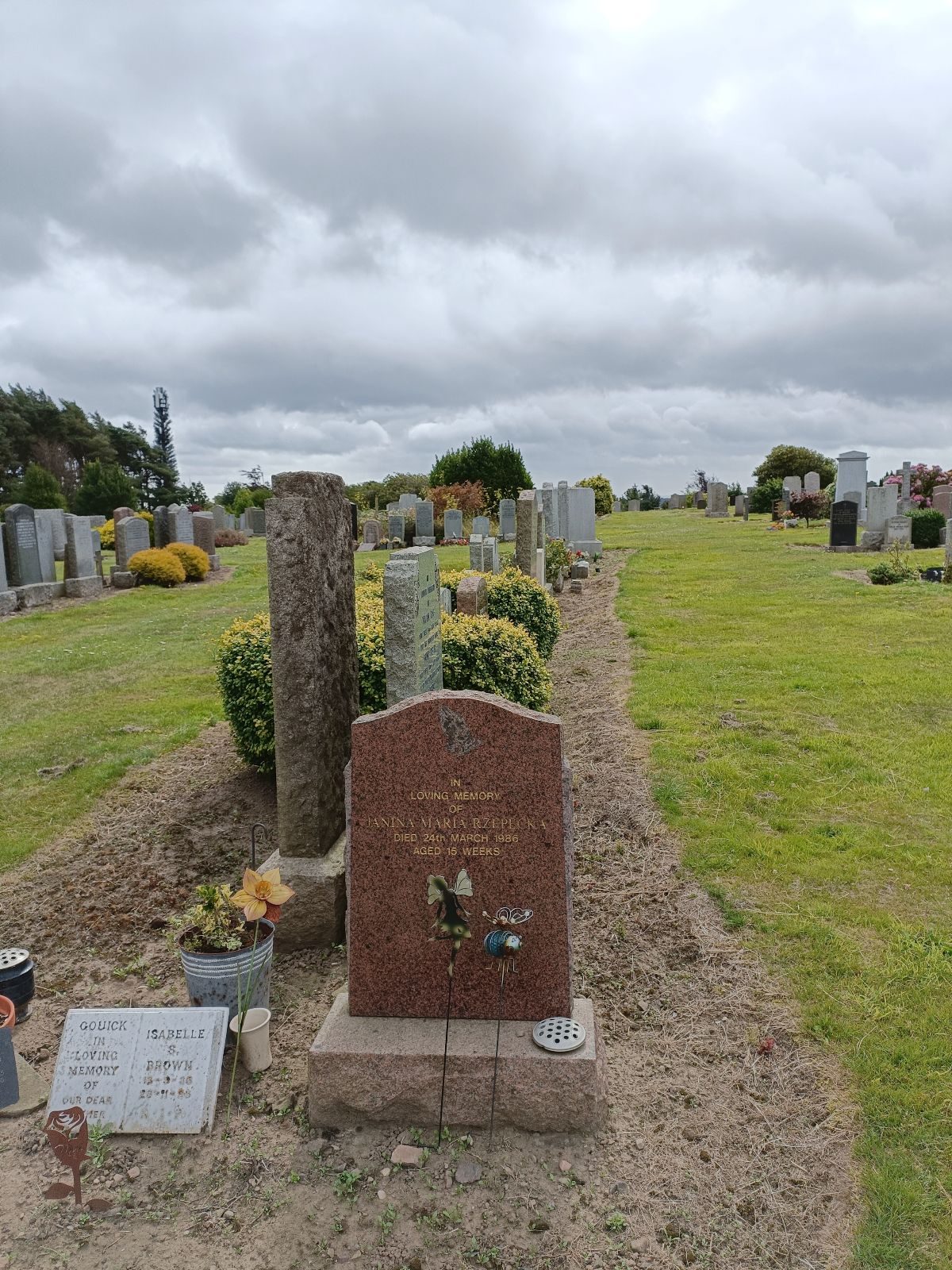 Pochowana z wnuczką Janiną Marią Rzepecką. Jej mężem był Stefan Rzepecki (05.03.1917, Czarnca, pow. Włoszczowa, woj. świętokrzyskie-09.03.1983, Kirkcaldy, Szkocja) – inżynier, podporucznik saperów. Mieli synów. Po śmierci Stefan Rzepecki został skremowany. Buried with her granddaughter Janina Maria Rzepecka. Her husband was Stefan Rzepecki (March 5, 1917, Czarnca, Włoszczowa County, Świętokrzyskie Voivodeship – March 9, 1983, Kirkcaldy, Scotland) – an engineer and second lieutenant of sappers. They had sons. After his death, Stefan Rzepecki was cremated. |