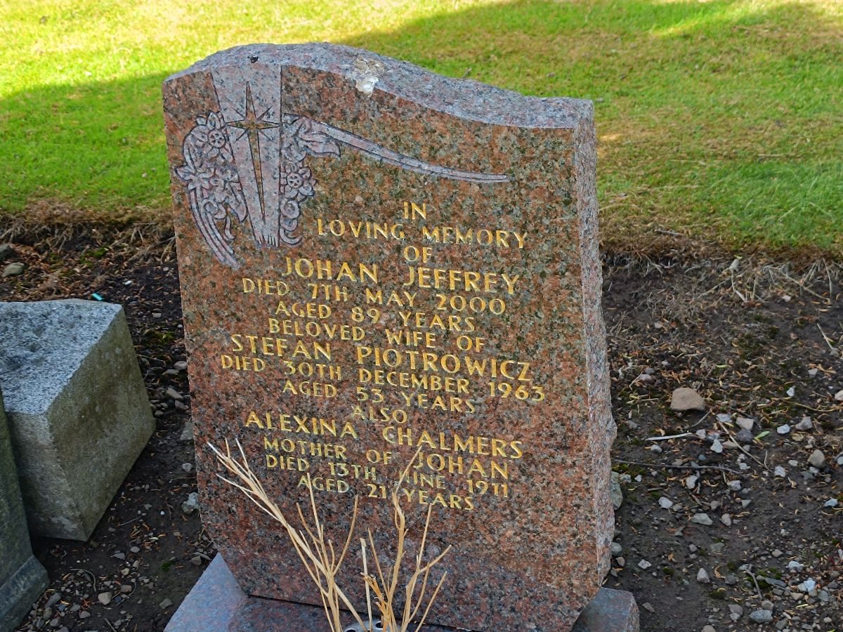 Pochowany z żoną Johan Jeffrey (zm. 07.05.2000 w wieku 89 lat) i jej matką Alexiną Chalmers (zm. 13.06.1911 w wieku 21 lat) |