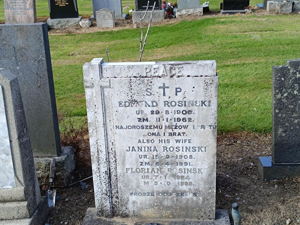 Pochowany z żoną Janiną Rosiński (15.09.1908-06.04.1991) oraz bratem (?) Florianem Rosińskim (07.01.1924-05.10.1998). |
