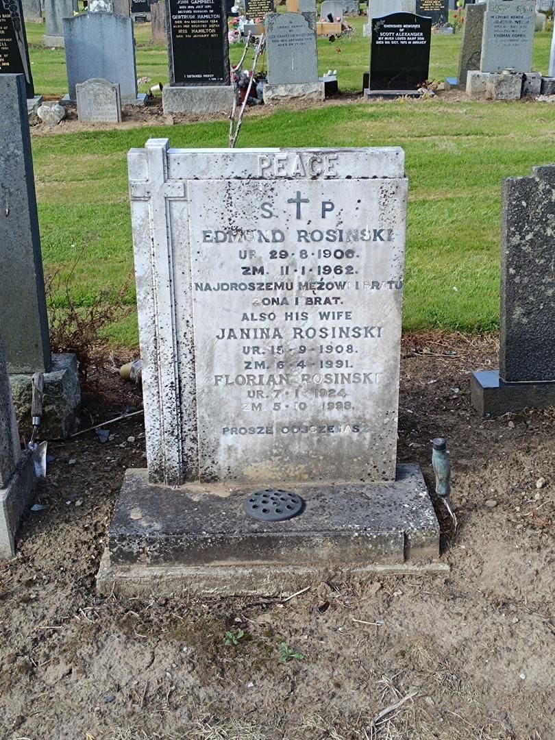 Pochowana z mężem Edmundem Rosińskim (29.08.1906-11.01.1962) i jego bratem (?) Florianem Rosińskim (07.01.1924-05.10.1998) |
